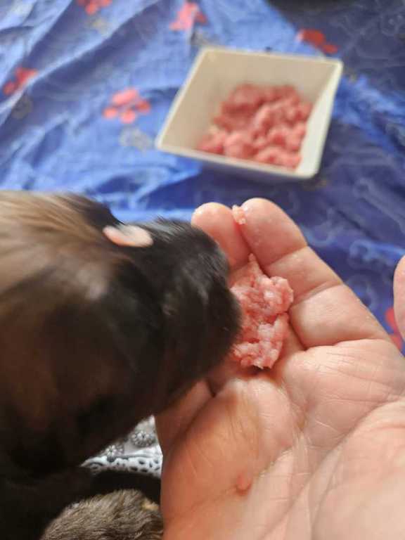 Es gab auch schon das erste Rinderhack zu probieren. Alle fanden es so richtig lecker und hätten gerne die ganze Schüssel für sich gehabt.