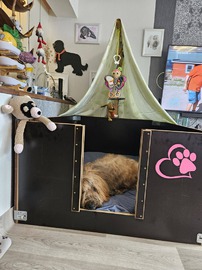 Vieleicht sollten wir sie daran erinnern, das wir eine schöne Wurfbox für sie ins Wohnzimmer stellen werden.